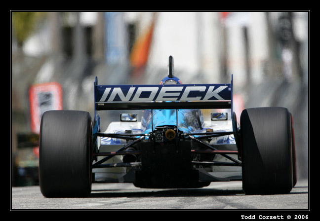 Mario Dominguez, after escaping the turn 1 incident, racing down Pike Ave during the Champ Car race at the 2006 Long Beach Grand Prix.